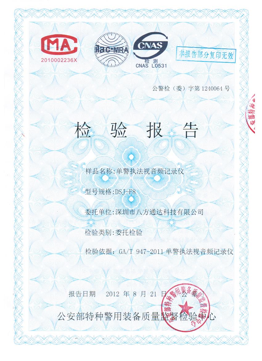 產(chǎn)品首次通過(guò)公安部檢測(cè)中心檢驗(yàn)