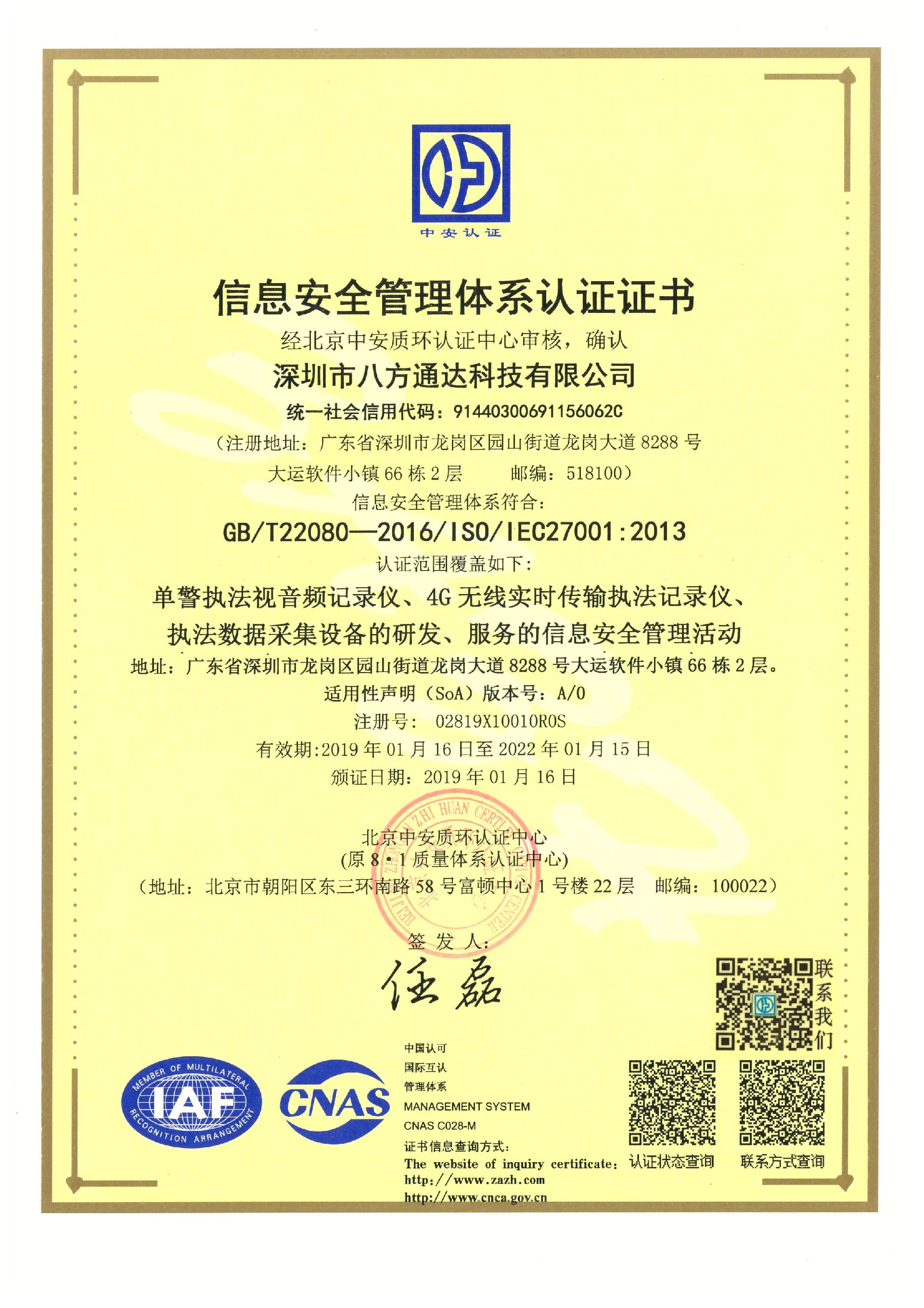 企業(yè)通過(guò)ISO270001、20000、安防工程一級(jí)資質(zhì)、商品售后服務(wù)體系、知識(shí)產(chǎn)權(quán)貫標(biāo)等多項(xiàng)資質(zhì)審查與中國(guó)電子科技集團(tuán)第五十四研究所在技術(shù)研發(fā)上達(dá)成深度戰(zhàn)略合作